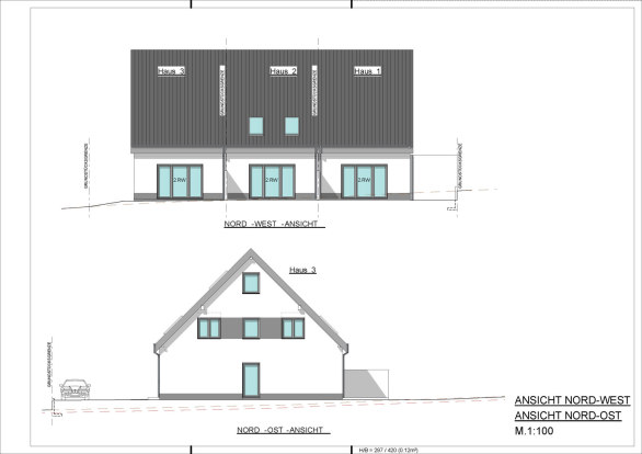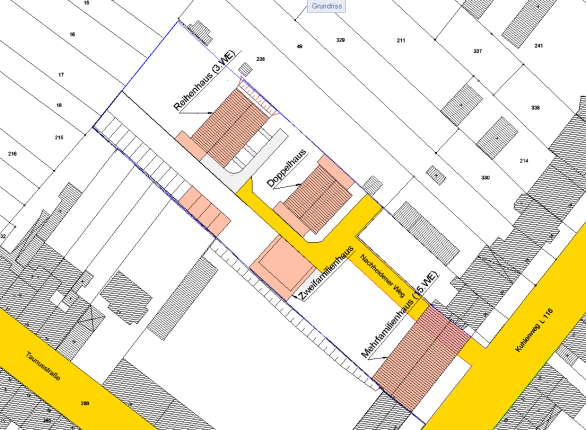 Beim Bauvorhaben Kuhlenweg 42 / Nachheidener Weg entstehen insgesamt ein Reihenhaus, ein Doppelhaus, ein Zweifamilienhaus und ein Mehrfamilienhaus.
